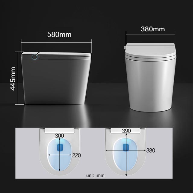 Idéal pour la rénovation, seules l'arrivée d'eau, l'évacuation et une arrivée électrique lui sont nécessaires. La faible profondeur 58cm du WC permet un gain de place. L'extrémité arrière du WC est rétractée, la taille de la lunette reste la même. Abattant chauffant à température réglable! Activation de la chasse d'eau automatique par détection de présence ou manuel. Ultra silencieux. Norme CE.