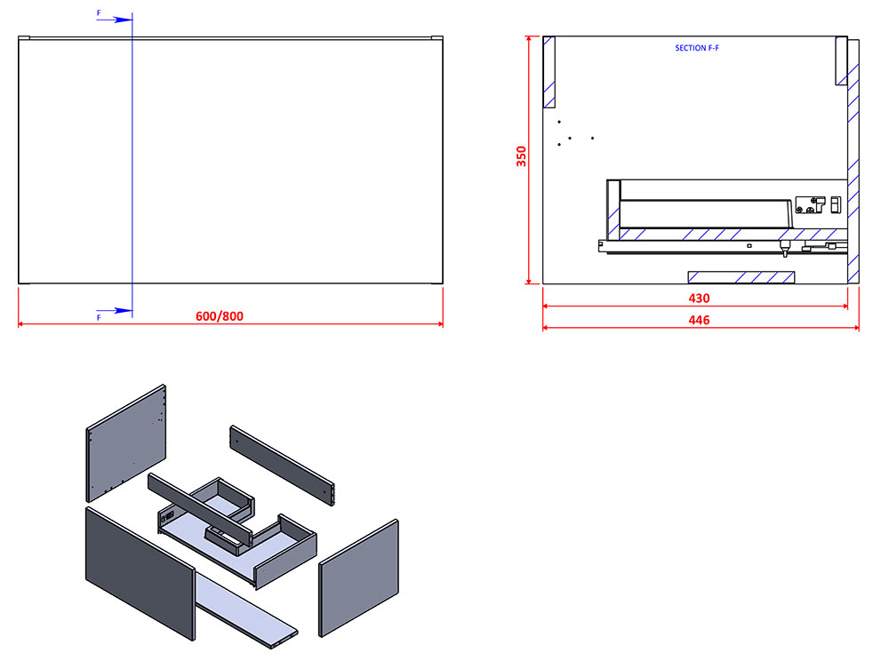 Ce meuble Caruso 60 ou 80 cm noir mat avec plan vasque en céramique antibactérienne est équipé d'un tiroir habilement découpé pour laisser le passage au siphon. Il est totalement intégré dans la façade et équipé de glissières à fermeture amortie "soft-close". La cuve dispose d'un trop-plein avec cache de finition chromé. Robinetterie, bonde et siphon à commander séparément.