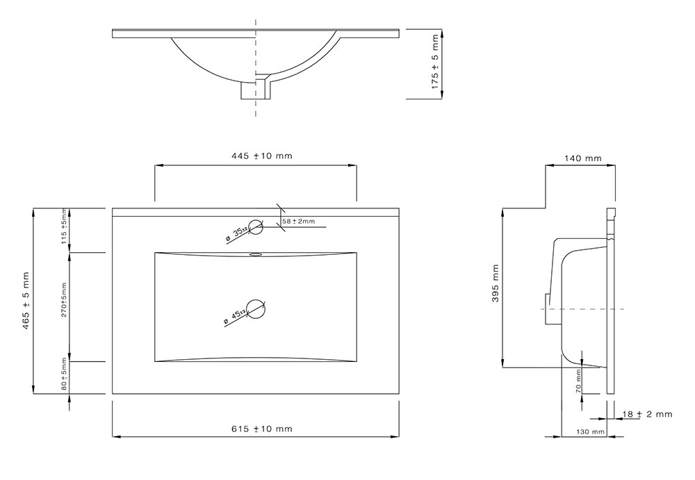 Ce meuble Caruso 60 ou 80 cm noir mat avec plan vasque en céramique antibactérienne est équipé d'un tiroir habilement découpé pour laisser le passage au siphon. Il est totalement intégré dans la façade et équipé de glissières à fermeture amortie "soft-close". La cuve dispose d'un trop-plein avec cache de finition chromé. Robinetterie, bonde et siphon à commander séparément.