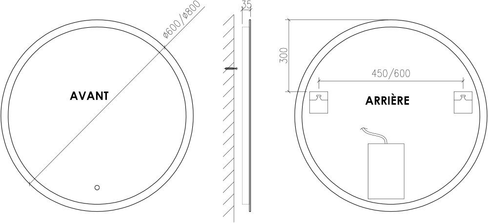 Diamètre : Ø60 ou Ø80 cm.