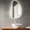 Ce miroir contemporain est équipé d'un interrupteur Touch Control sur le miroir pour un contrôle aisé du bout des doigts. L'éclairage LED à l'arrière du miroir apporte une source lumineuse douce et homogène mettant en valeur la forme originale de ce miroir et de la salle de bains. Épaisseur du miroir avec cadre : 3,5cm. Dimensions : 80x52 cm