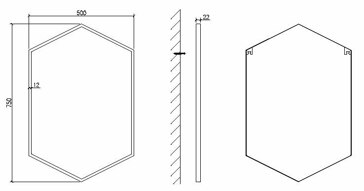 Miroir hexagonal avec cadre fin noir mat, Hexa.