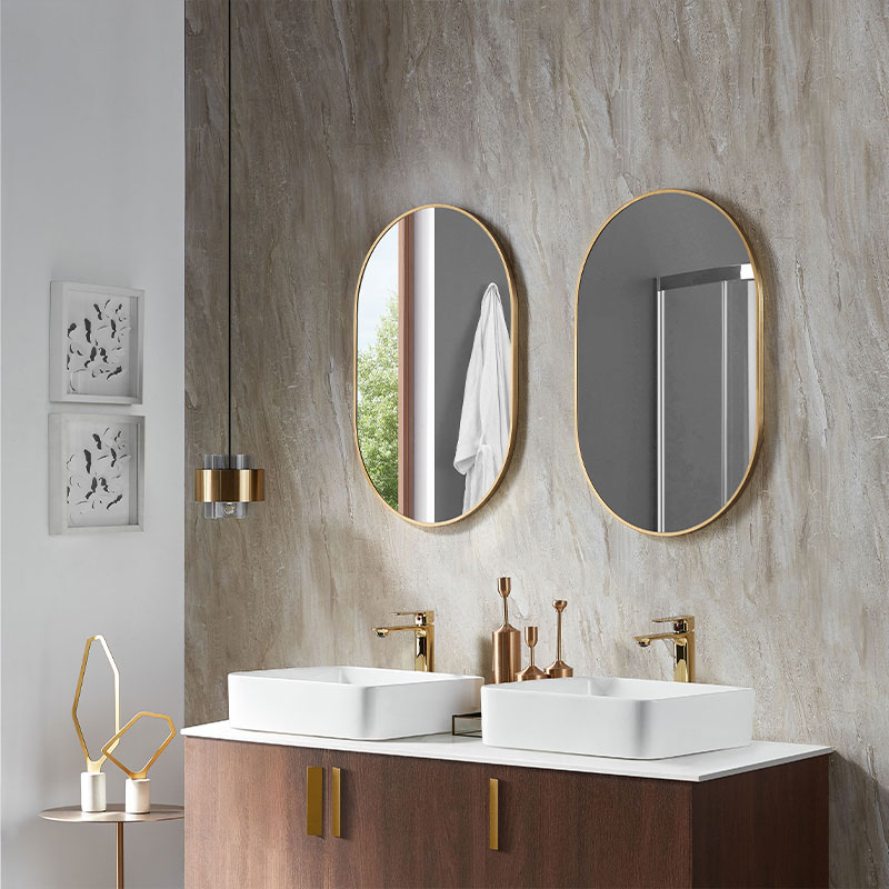 Ce miroir au design sobre et élégant s’intégrera dans tous les intérieurs (industriel, contemporain, campagne...). Son contour en métal finition laiton fait de ce miroir un objet déco pour votre salle de bain. Dimensions : 50x80 cm. Pour installation verticale uniquement.