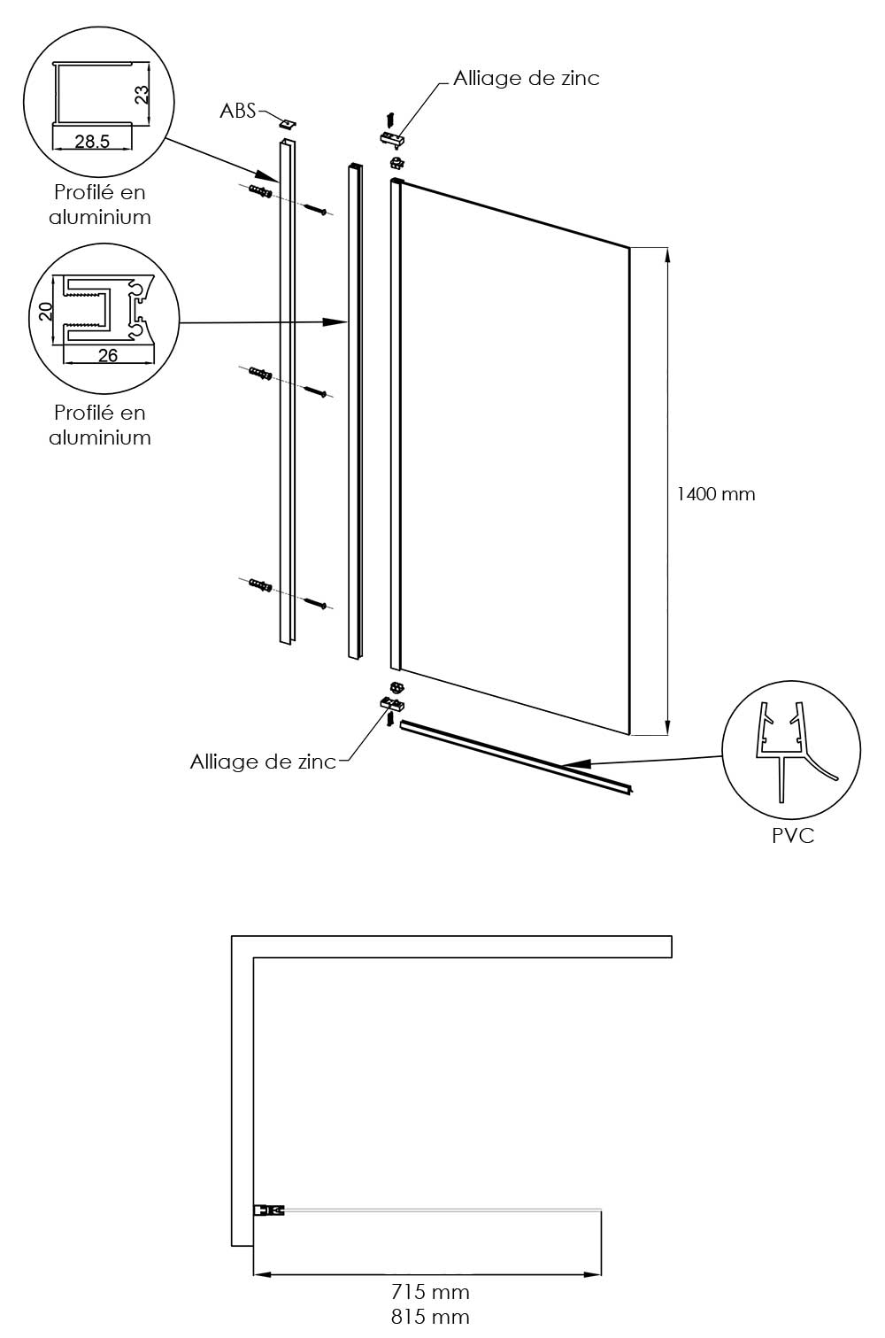 Le profilé est en acier inoxydable finition chromé. Ce modèle est réversible gauche ou droite et extensible avec une marge de 2 cm pour s'adapter parfaitement au mur.