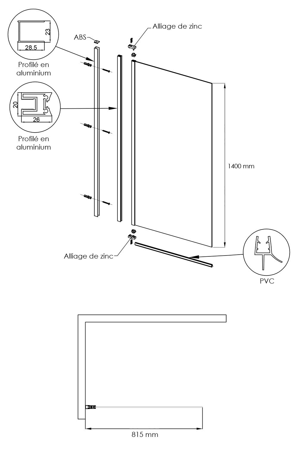 Le profilé de la paroi de baignoire est en acier inoxydable finition noir mat. Ce modèle est réversible gauche ou droite et extensible de 78 à 80 cm pour s'adapter parfaitement au mur. Ouverture à 180°.