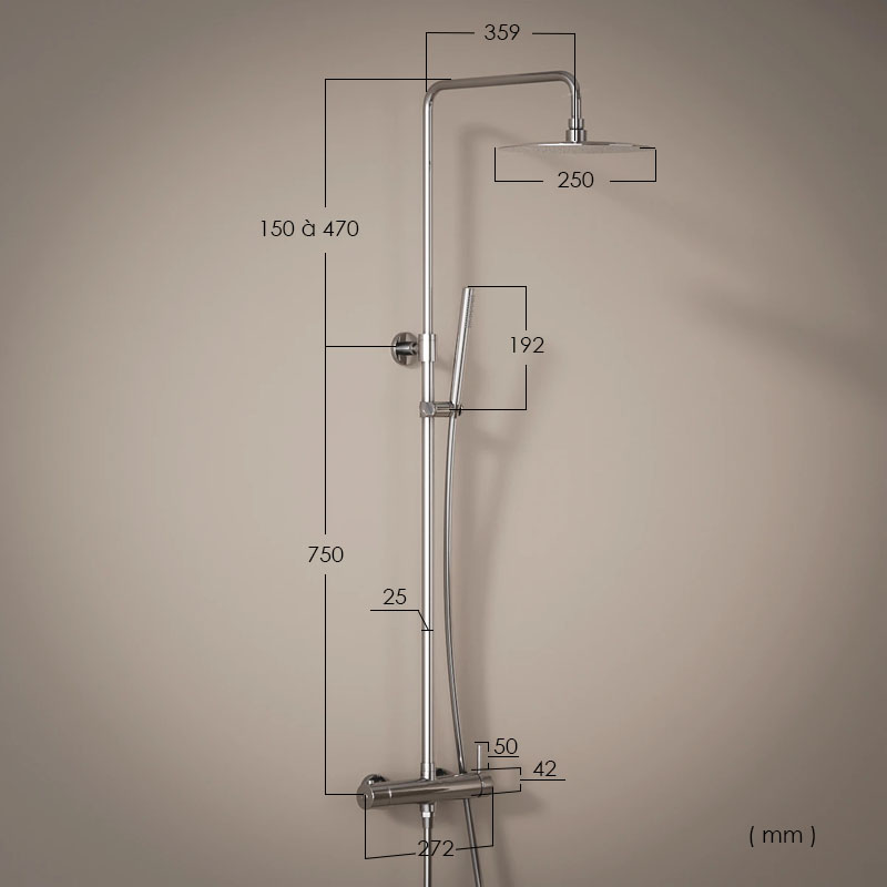 Colonne de douche mitigeur, Ø25cm, douchette tube chromé, Châtelet III