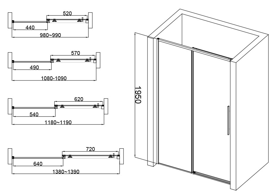 Extensibilité de 0 à 10 mm. Hauteur : 195 cm