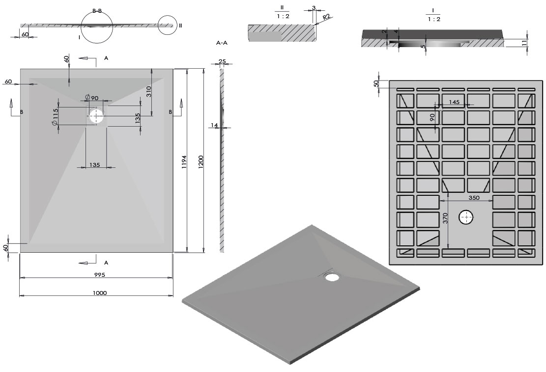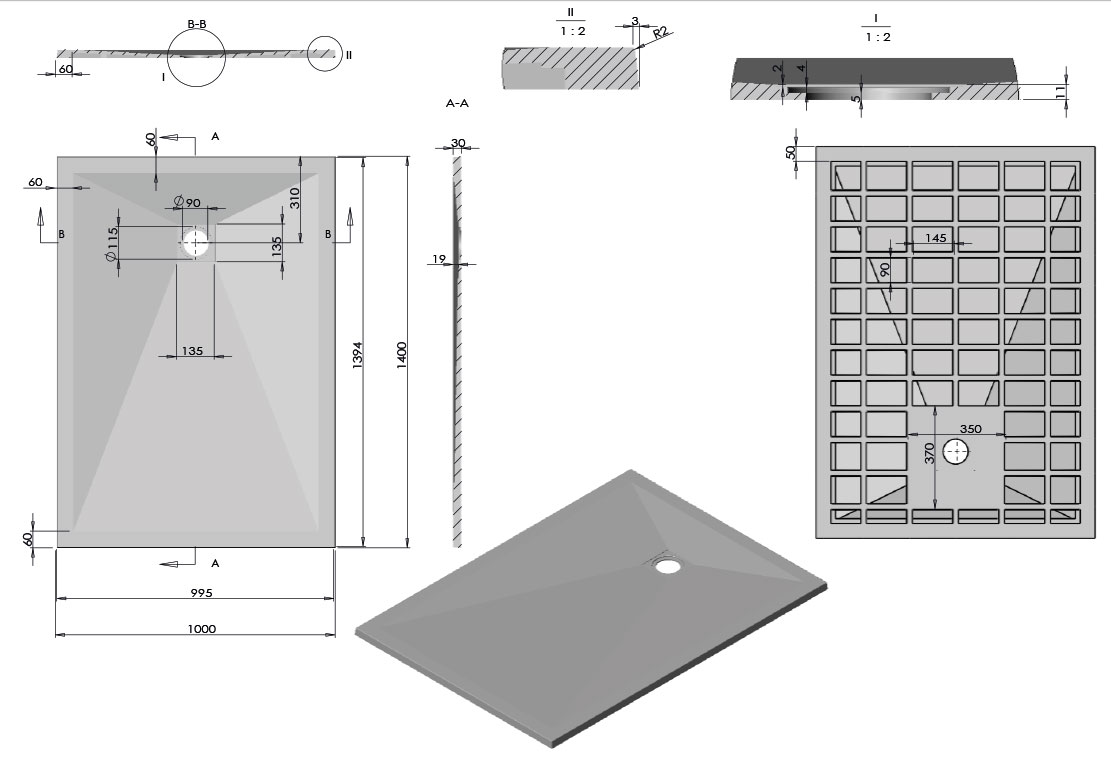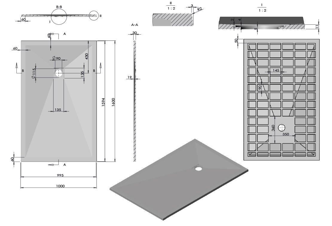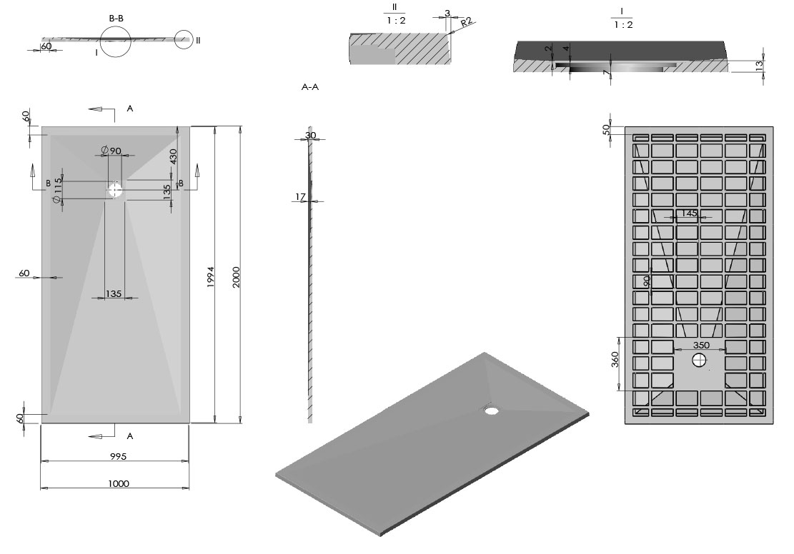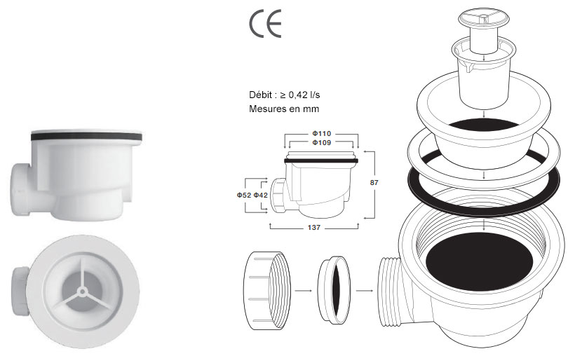 Extra-plat. Sa surface antidérapante est antibactérienne. Il est redécoupable, ce qui lui permet de s'adapter à toutes les formes de murs. La grille noire carré et la bonde sont incluses. Garantie 3 ans.