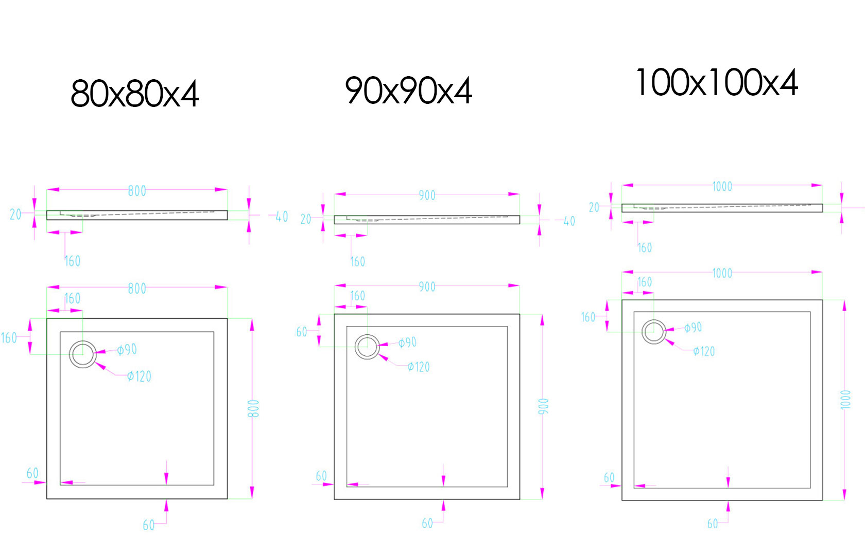 Disponible en 3 dimensions : 80x80, 90x90 ou 100x100 cm. En acrylique blanc, renforcé par de la fibre de verre et de la résine.