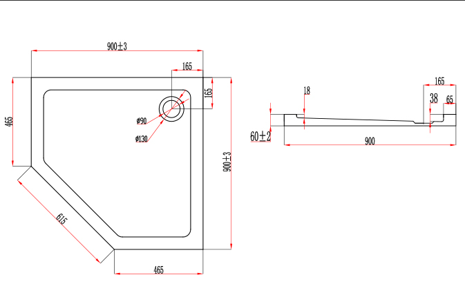 Receveur de douche pentagonal en acrylique blanc, Bora.