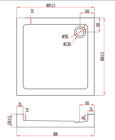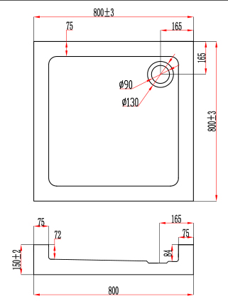 Disponible en 80 X 80 X 15 cm ou 90 X 90 X 15 cm. Sa hauteur de 15 cm facilite son installation et permet l'intégration du siphon sans aucun travaux. Pour faciliter le passage des évacuations, l'arrière du receveur est ouvert. Par conséquent il ne peut être installé que dans l'orientation présentée sur l'image. Pieds réglables inclus, déjà fixés.