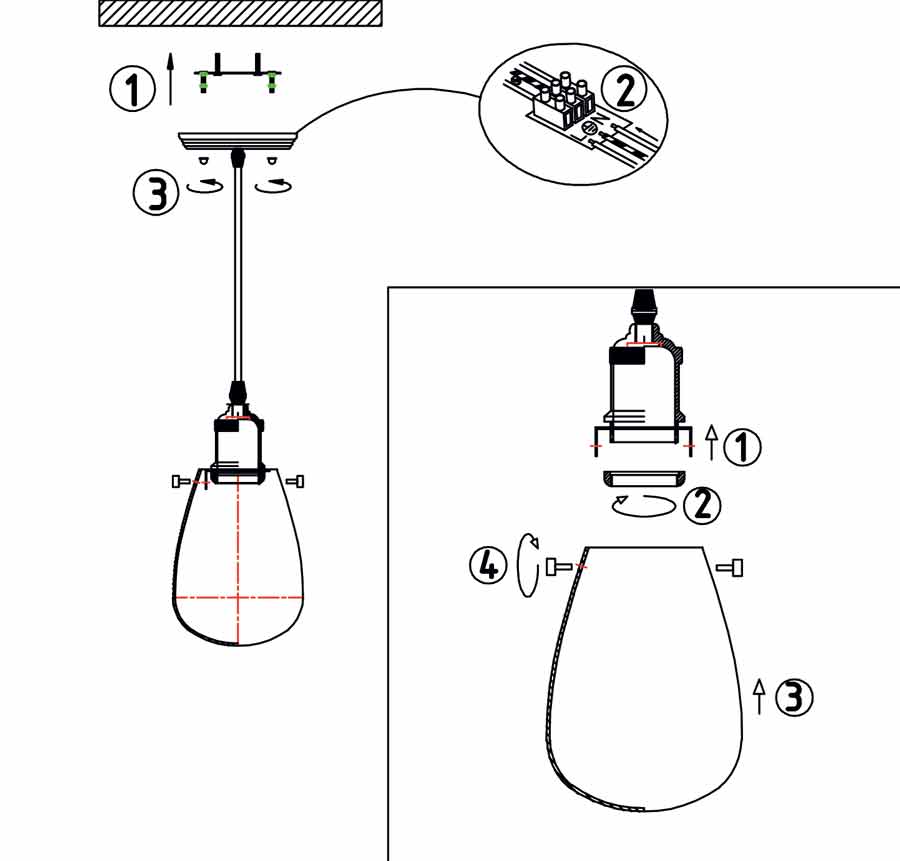 Suspension industrielle avec globe et ampoule ronde transparente .