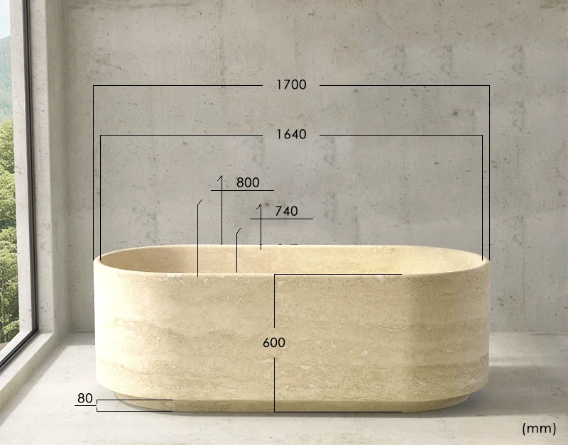 Baignoire îlot oblongue 170x80x60 en pierre naturelle Travertin beige – Caïques