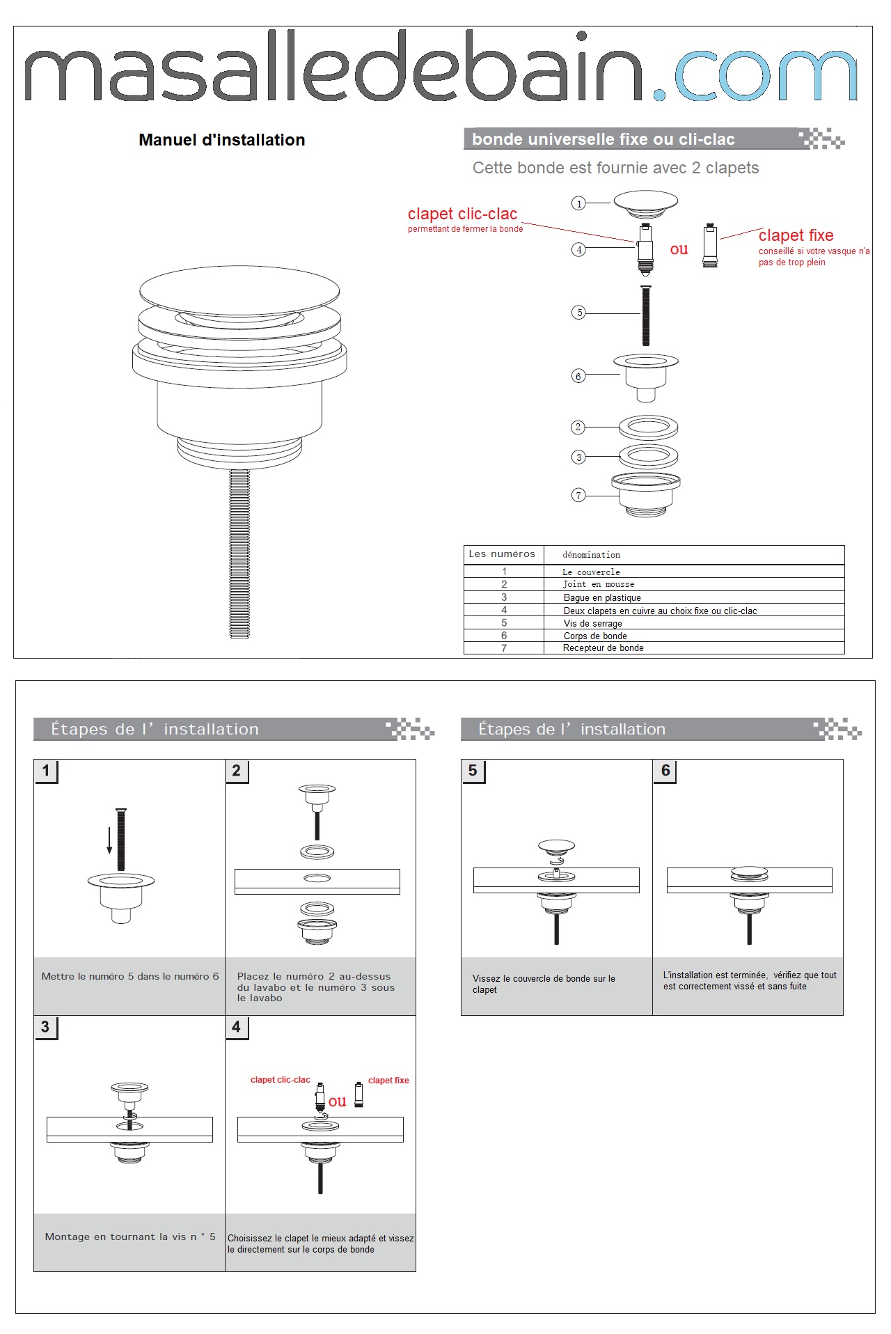 Bonde lavabo en laiton finition chromé brossé universelle, clic/clac ou fixe. Cette bonde permet une installation en écoulement libre pour vasques sans trop plein, ou bien en clic-clac pour les vasques disposant du trop plein.