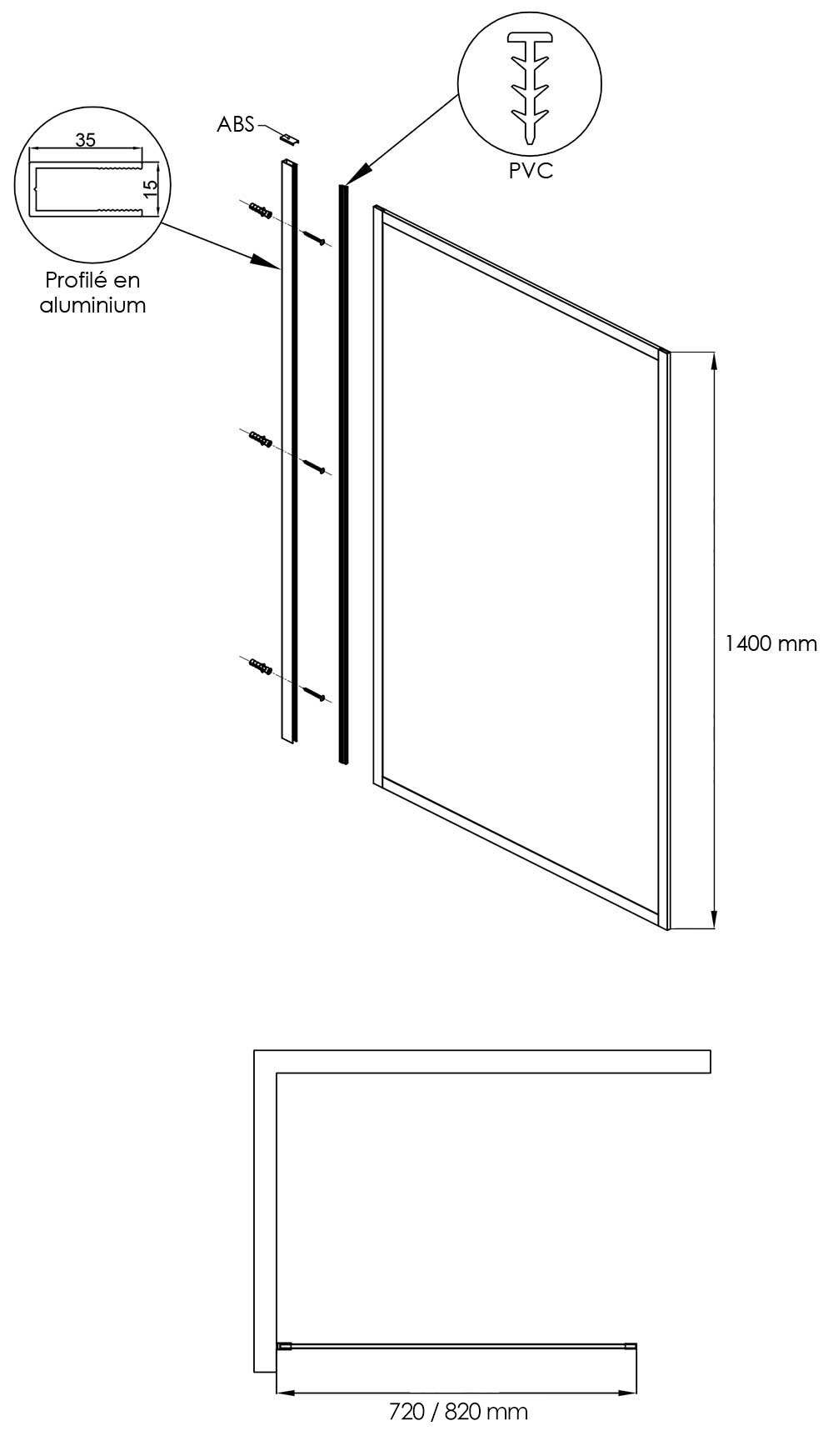Le profilé est en acier inoxydable finition noir mat. Ce modèle est réversible gauche ou droite. Extensibilité de 20 mm pour s'adapter parfaitement au mur.