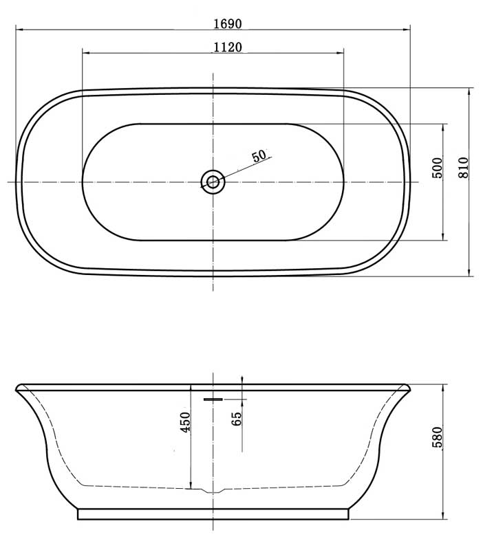 Vidage inclus. Dimensions : 169x81 cm. Hauteur : 58cm.