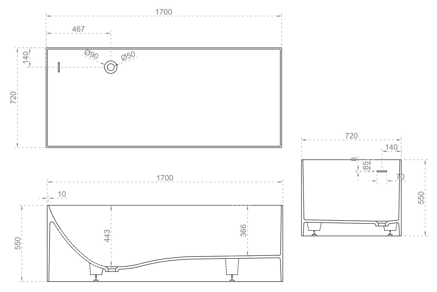Baignoire ilot rectangulaire 170cm: Le solid surface effet velours.