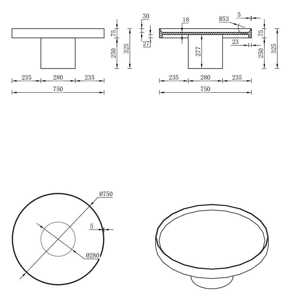 Desserte Ronde de Salle de Bain Ø73 en Bois Smoky Grey – D'O