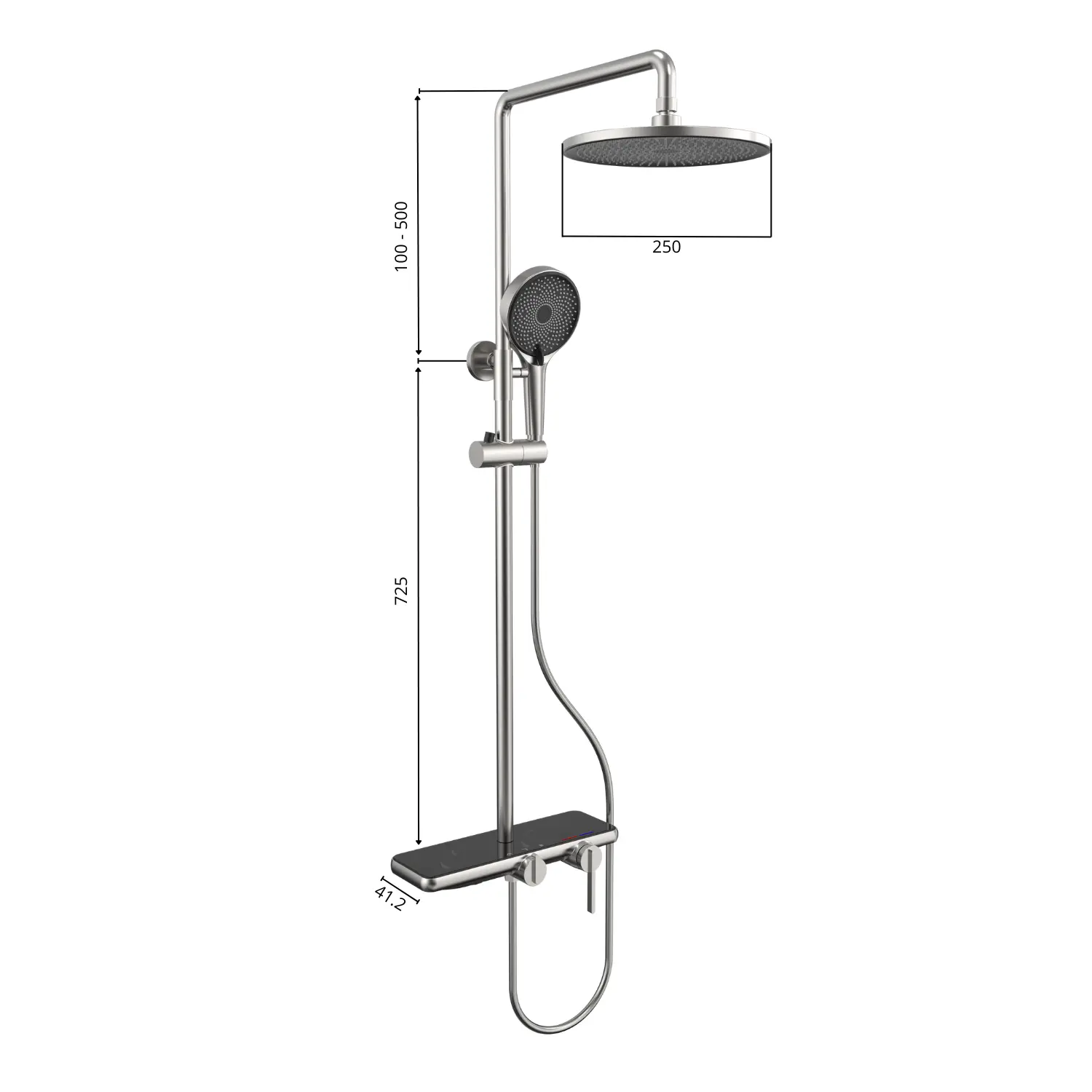 Élégante et robuste, la colonne de douche Rivoli en inox brossé offre un design épuré et durable.