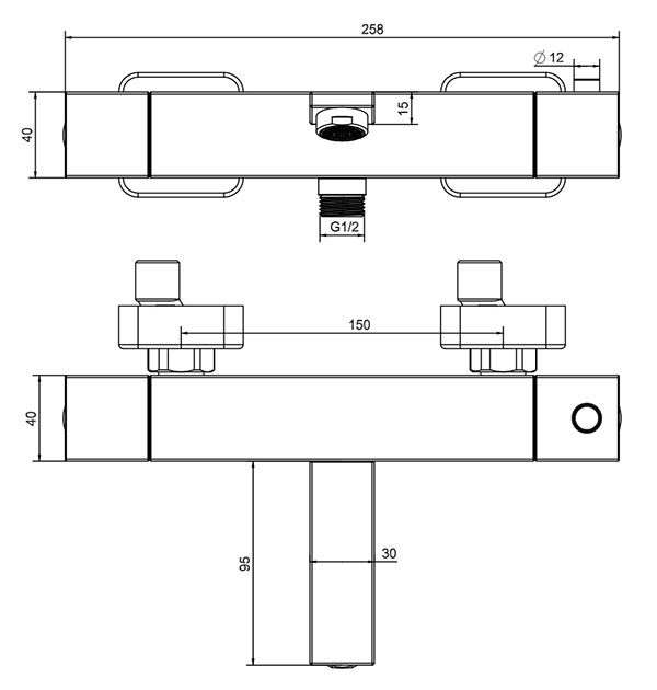 Robinet mitigeur thermostatique bain douche noir, Tuileries II.