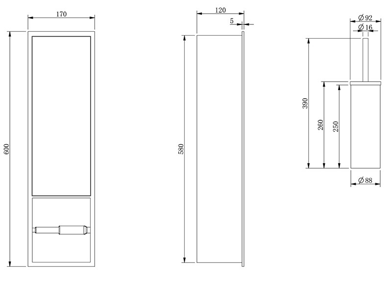 Cette niche, peut-être posée porte-rouleau vers le haut ou vers le bas. Elle est idéale pour optimiser votre espace tout en ajoutant une touche hyper design à votre pièce. Réalisée en acier inoxydable, elle possède une grande résistance à la corrosion et à l'humidité. Profondeur : 12 cm. Porte-balayette et balayette inclus.