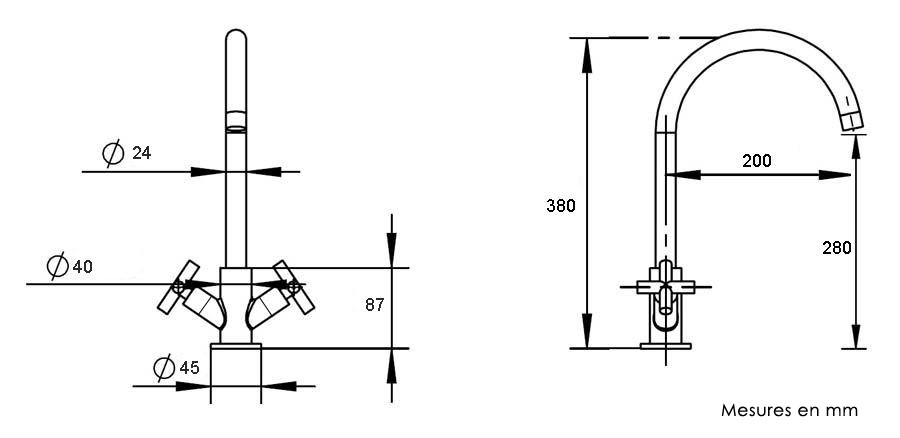Robinet mélangeur lavabo, noir brossé, Cross II.