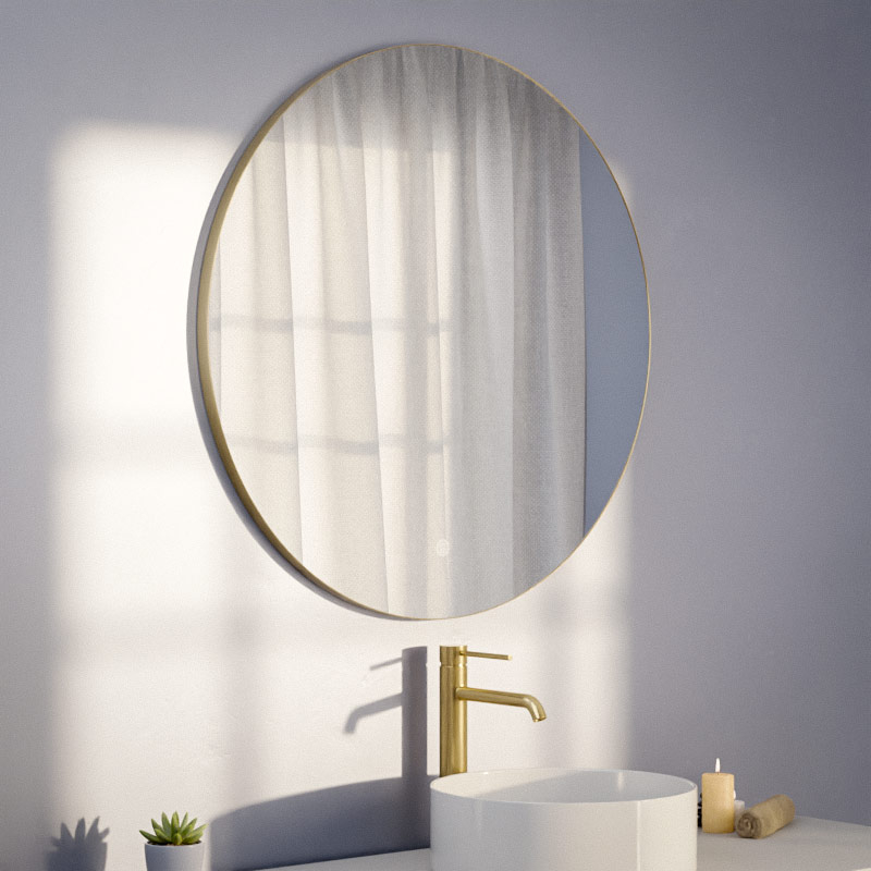 Miroir rond doré brossé et système anti-buée, Châtelet.