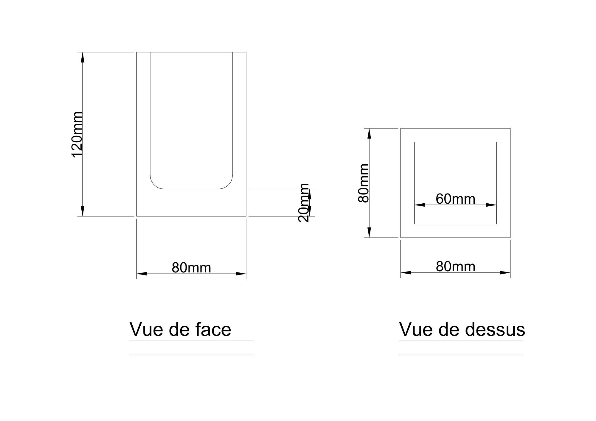 Pot à poser carré, marbre véritable nero marquina